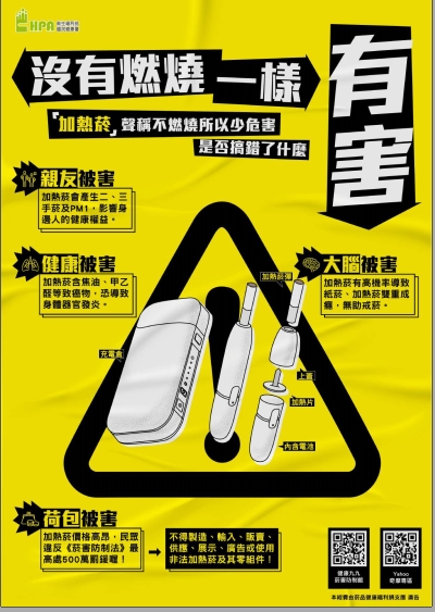 轉知:衛生福利部國民健康署製作「加熱菸危害海報」等資料,請學校於校內張貼海報並設置跑馬燈,強化教師、家長及學生菸害防制識能,請查照。