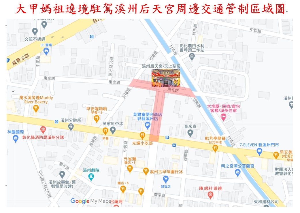 轉知:彰化縣警察局北斗分局為維護115年4月19日「大甲鎮瀾宮天上聖母遶境進香活動」,將視交通狀況彈性管制車輛,請惠予協助張貼公告及宣導周知,請查照。